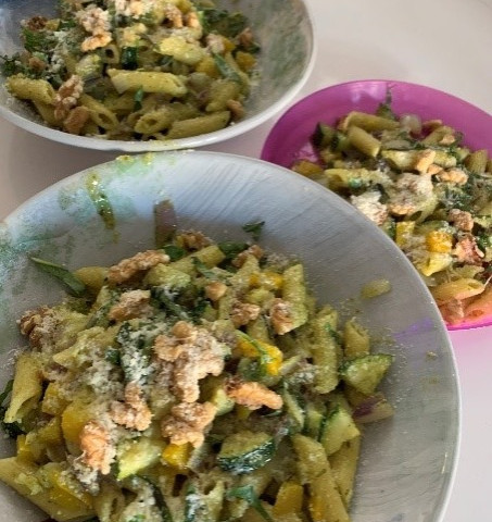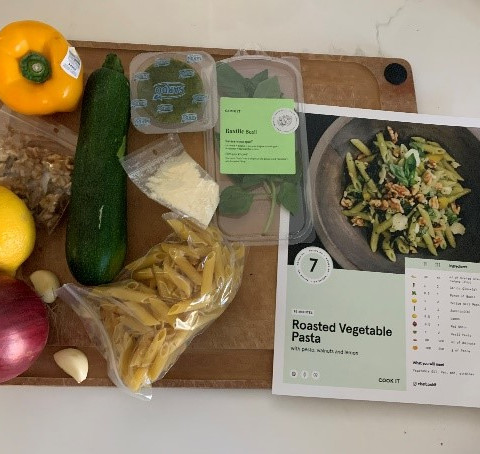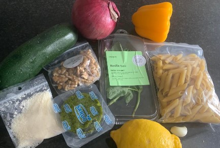The second dish we prepared was the zucchini pesto pasta. This recipe was ready within 30 minutes and tasted delicious! We noticed the recipes had a lot of flavour and had various healthy ingredients we would not regularly put in pasta, like walnuts and zucchini.